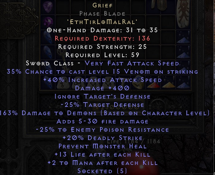 The GRIEF 'Eth Tir Lo Mal Ral' Runeword - Superior Stainless Steel and Plastic Travel 14oz Mug with Item Stats, Coffee Cup Gift for Busy Professionals, D2R Travel Mug, For Hot or Cold Beverage