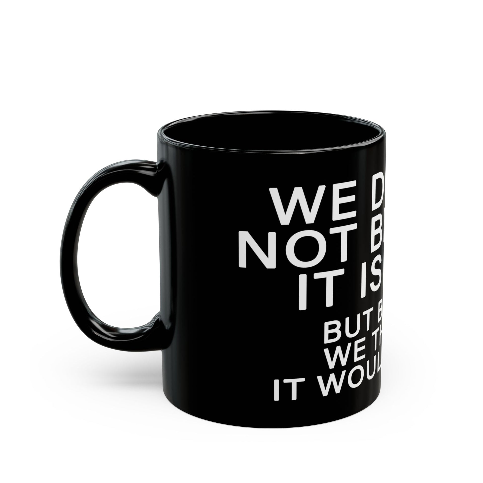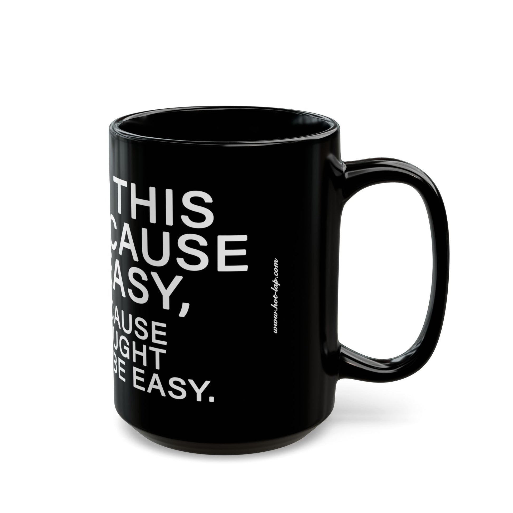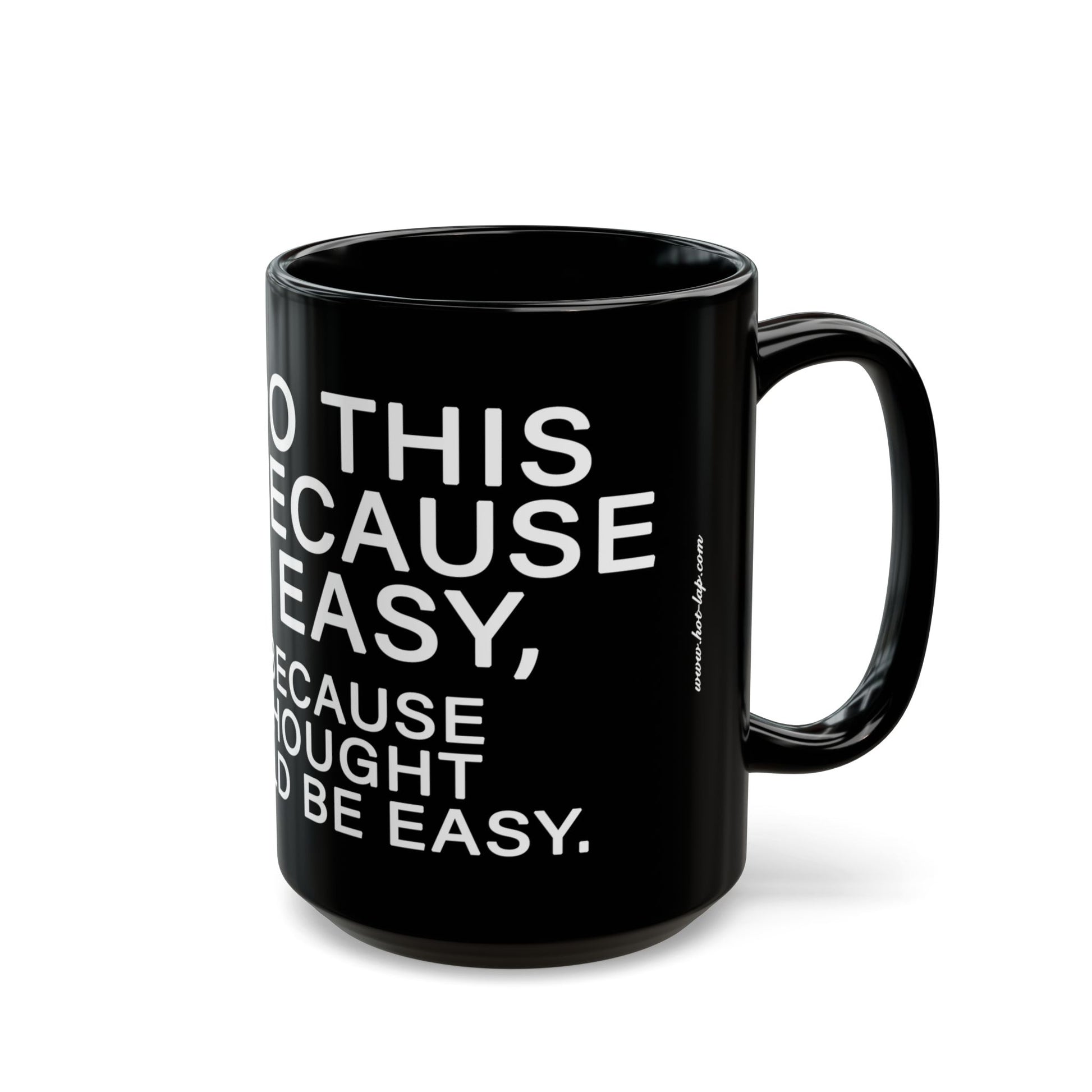 WE DO THIS NOT BECAUSE IT IS EASY, BUT BECAUSE WE THOUGHT IT WOULD BE EASY. Motivational Black Mug - Inspirational Coffee Cup, Office Desk Accessory, Daily Shop Affirmation, Unique Garage Gift, Hot-Lap.com